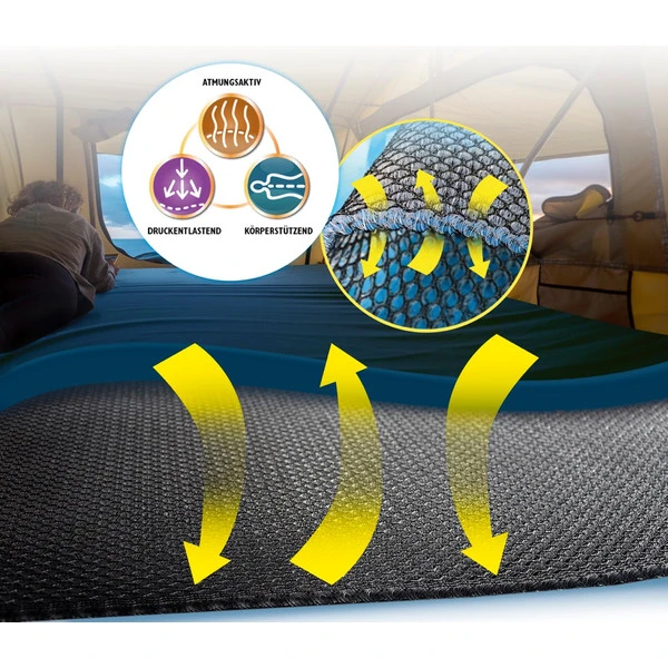 Die Dryweave S wird unter die Matratzen im Dachzelt gelegt und vermindert so die Bildung von Kondernswasser unter den Matratzen.