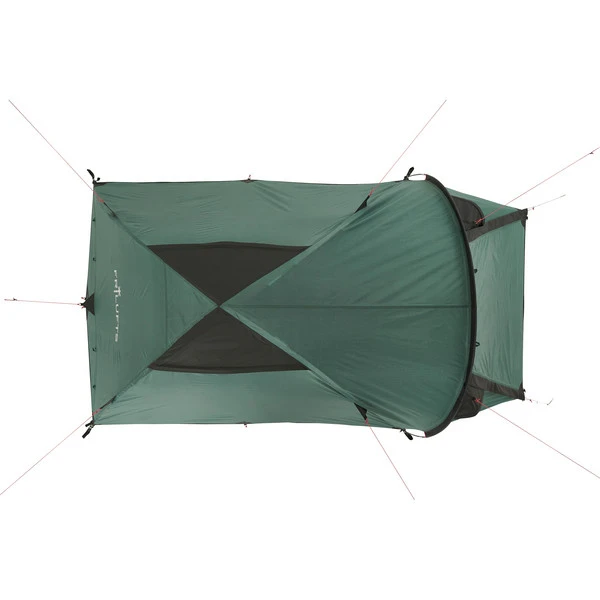 Viel Platz für bis zu 2 Personen durch die großzügige Innenzeltbreite. In der Apsis lassen sich Rucksäcke und anderes Gepäck verstauen. Die insgesamt vier Lüfter in Zelthimmel und Apsis sorgen bei warmen Temperaturen für optimale Luftzirkulation. Wem das im Sommer noch nicht reicht, der kann die Zeltrückwand im unteren Bereich auf kompletter Länge nach oben wickeln, um für noch mehr Durchzug zu sorgen.