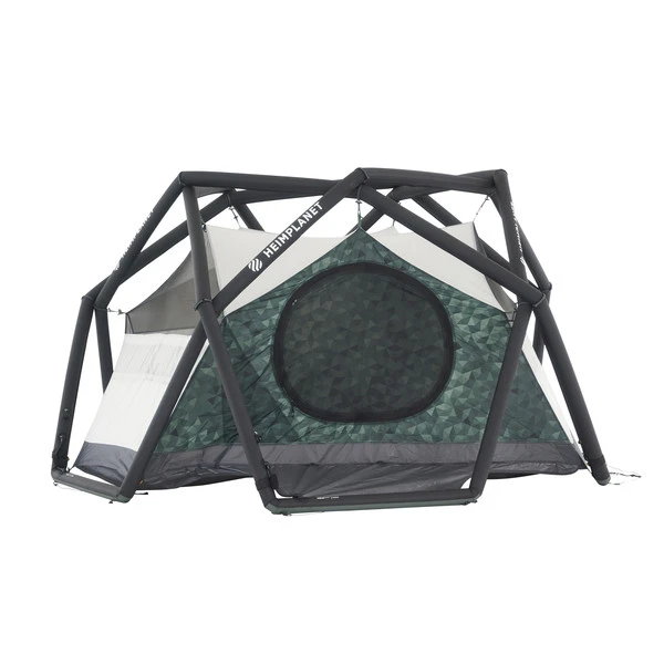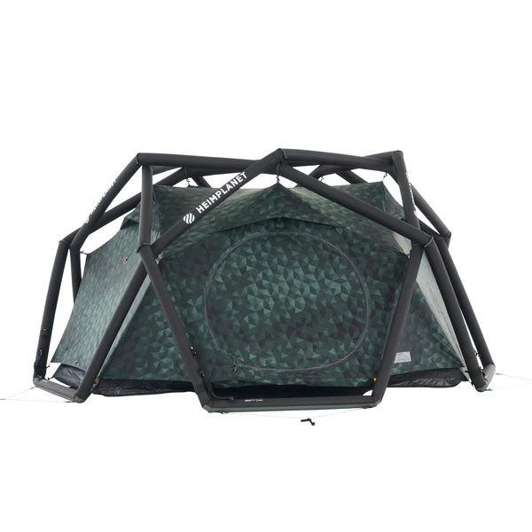 Extrem schneller Aufbau in nur einem einzigen Arbeitsschritt: ausrollen – aufpumpen – fertig. Die geodätische Bauweise des Zeltes sorgt für gute Stabilität bei Wind und Wetter.