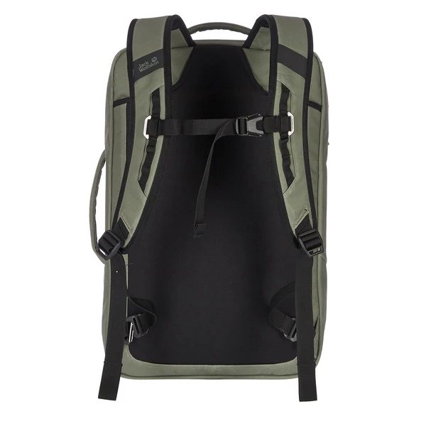 Das canvasartige 600D-Außenmaterial des Traveltopia Cabinpacks ist richtig schön robust. Zusätzlich ist es mit einer wachsartigen, wasserabweisenden Beschichtung imprägniert, die komplett PFC– und PVC-frei ist. Der wasserabweisende Reißverschluss ist reparaturfähig. Sollte er also in die Jahre kommen, kannst du ihn einfach reparieren lassen.