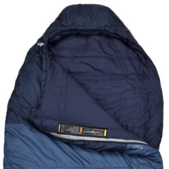 - Kordelzug an der Kapuze mit flachem und rundem Profil. So kannst du in der Nacht ertasten, ob du den oberen oder unteren Teil der Schlafsackkapuze zuziehst.