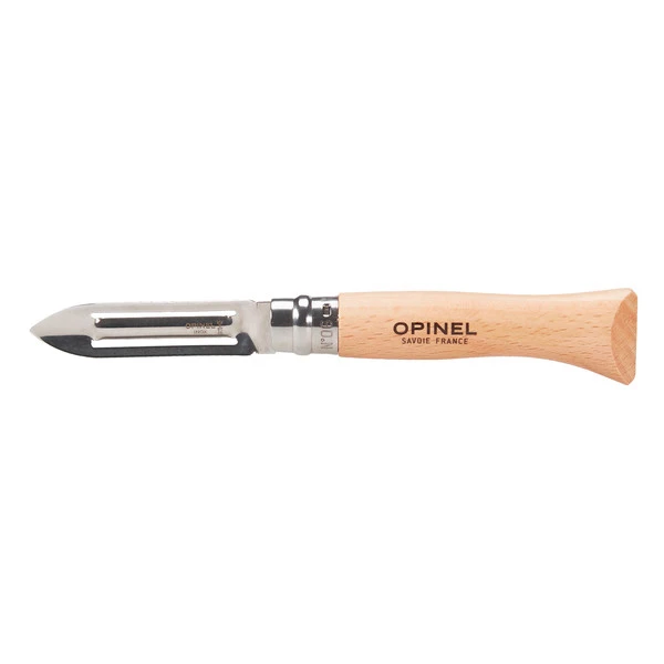 Das Schälmesser ist von Rechts- und Linkshändern gleichermaßen bedienbar und besitzt eine geschliffene Spitze, mit der schlechte Obststellen herausgeschnitten werden können. Die von Opinel bekannte Vibroloc-Sicherung verhindert ein Einklappen des Schälmessers bei der Benutzung und sichert es beim Transport vor dem versehentlichen Öffnen.