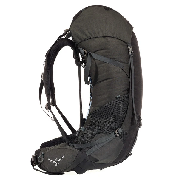Die Rückenplatte des Rook 50 lässt sich in der Höhe verstellen. Dies funktioniert über ein unkompliziertes Knebel-System. Auch die Schultergurte sind anpassbar. Trotz der Höhenverstellbarkeit ist es Osprey gelungen, den gespannten AirSpeed-Netzrücken einzusetzen. Dieser sorgt dafür, dass die Luft zwischen deinem Rücken und dem Rucksack zirkulieren kann. Das dünne, aber äußerst robuste Mesh liegt komfortabel an und sorgt für ein trockenes Tragegefühl.