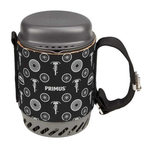 Eine mit Kork isolierte Manschette aus G-1000 Gewebe mit hübschem Feed Zone Print und Henkel schützt deine Hand vor Verbrennungen und erleichtert das Hantieren mit dem Topf. Den Deckel aus Tritan kannst du zum Abgießen von überschüssigem Wasser beim Nudeln kochen verwenden. Er eignet sich aber auch als kleiner Trinkbecher.